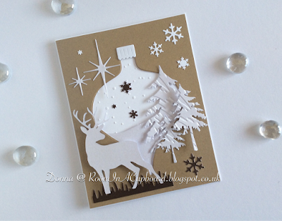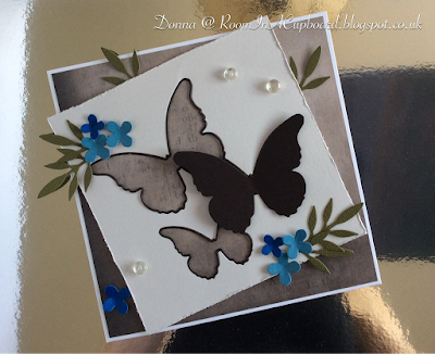 As you can see, I've kept to a similar colour scheme. I'm guessing that Anja may have stencilled her card background on with ink, but I could be wrong. I used the new 'Shimmer' stencil from Memory Box with some Sparkle Medium (Sparkle Gel) from Imagination Crafts. Sadly, the camera doesn't do justice to the slight sparkle effect. Never mind...
