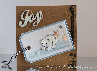 One large sentiment to echo Anya's original tag (coloured using my Stampin' Up Chalk Marker), some twine... and then I had to walk away before the temptation to add some more punched snowflakes from my Martha Stewart/All Over The Page 'Aspen Flurry' took over!